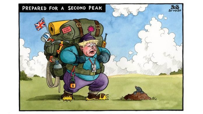 In today’s featured cartoon, Bob Moran depicts UK Prime Minister Boris Johnson’s recent announcement that the country would see a second wave of Covid-19.