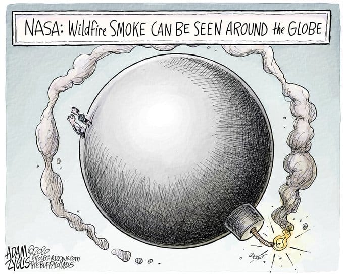 Zyglis depicts the Earth as a ticking time bomb, in light of the Australian bushfires.