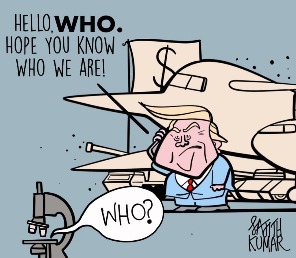 Sajith Kumar takes a jibe at US President Donald Trump and reminds him in a cheeky way that the virus doesn’t really care who he is.