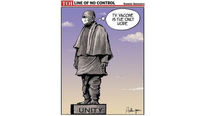 In today’s featured cartoon, Sandeep Adhwaryu jokes we need vaccination to protect us from the vitriolic content on TV.