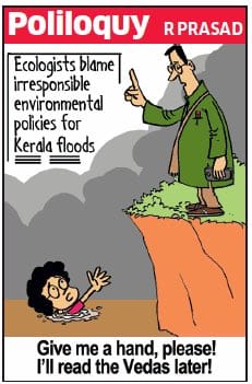 R. Prasad in The Economic Times takes a swipe on ecologists’ comment on Kerala floods. Environmentalists said that failure of policy decision has caused the floods in Kerala.
