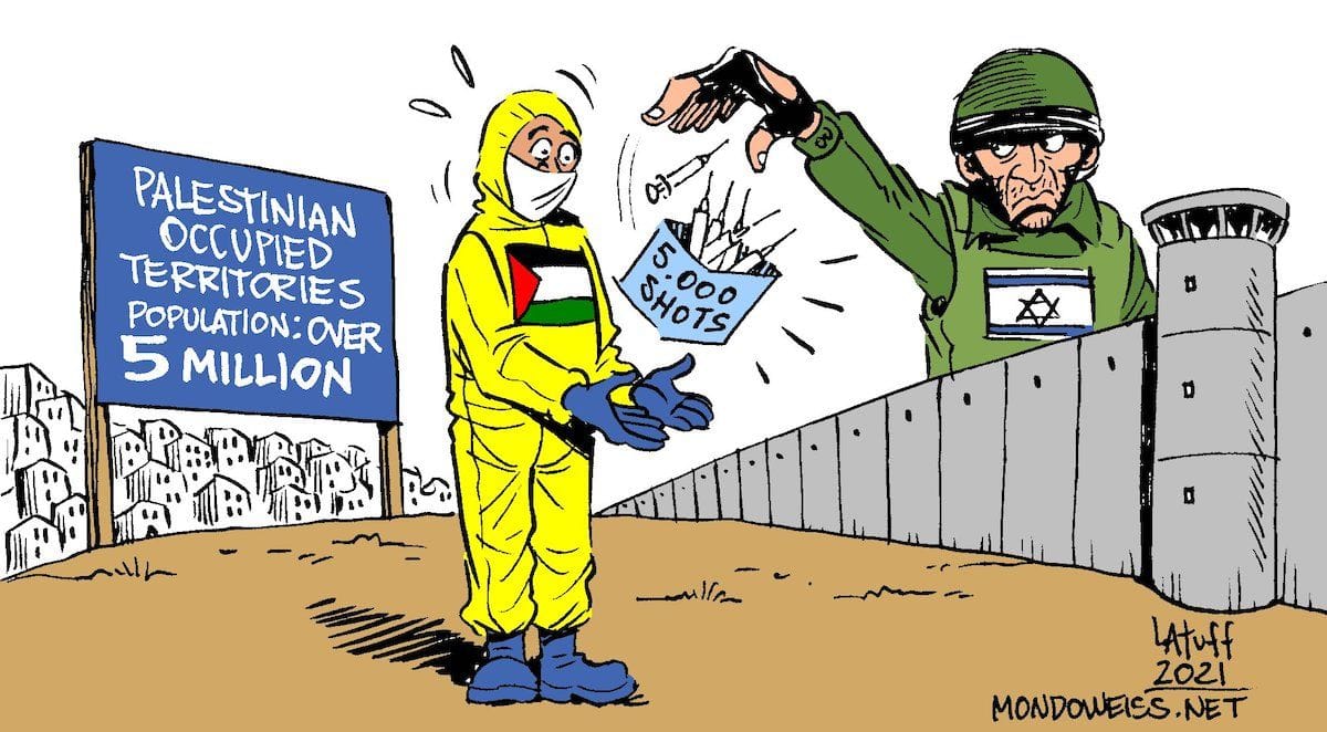 Carlos Latuff takes a dig at the Israeli government of Prime Minister Benjamin Netanyahu that has agreed to offer 5,000 doses of the coronavirus vaccine to the Palestinians to immunise front-line medical workers.