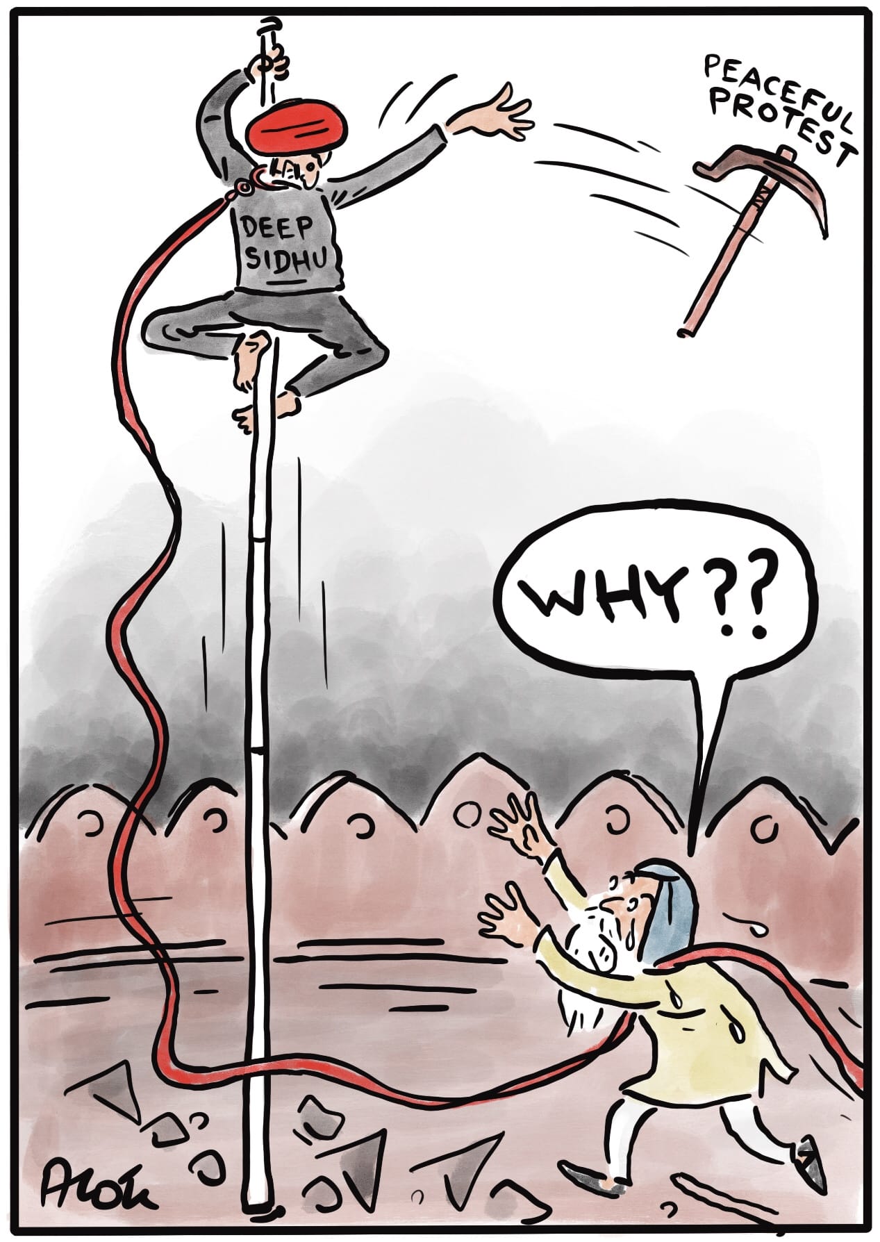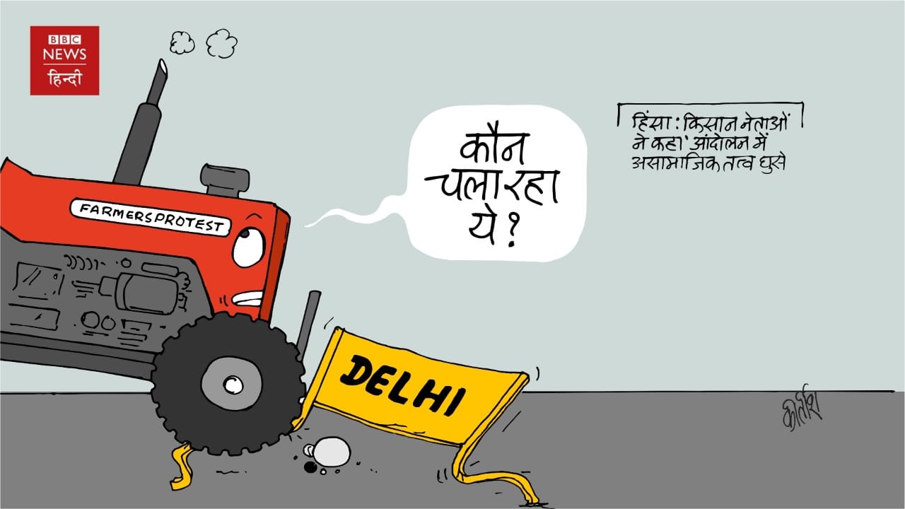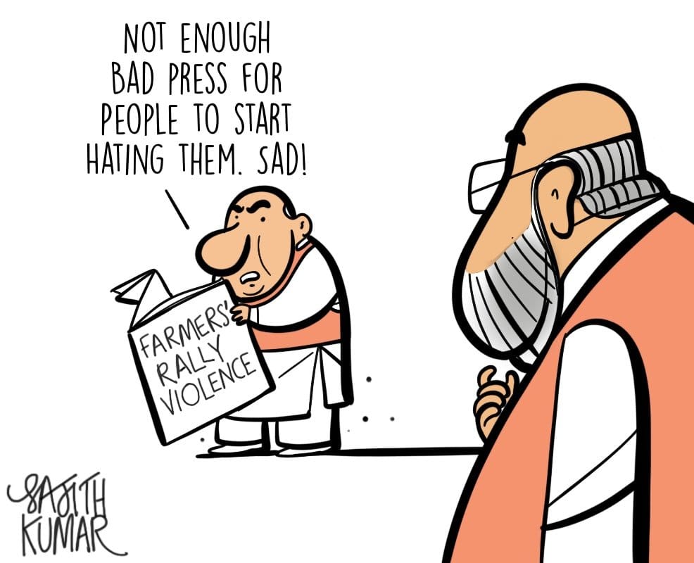 Kirtish Bhatt illustrates on the tractor rally taken out by protesting farmers in Delhi on Republic Day that turned violent.
