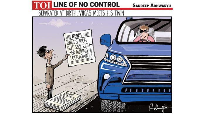 In today’s featured cartoon, Sandeep Adhwaryu takes a swipe at the growing disparity between the rich and poor in India.
