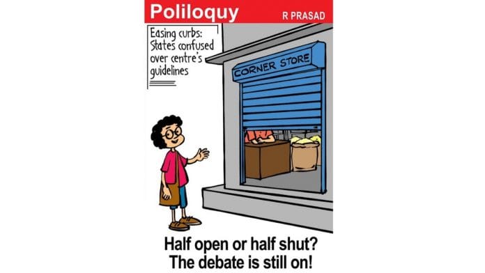 In today’s featured cartoon, R Prasad takes a dig at the central government’s revised guidelines about opening of shops and the subsequent confusion on the order.