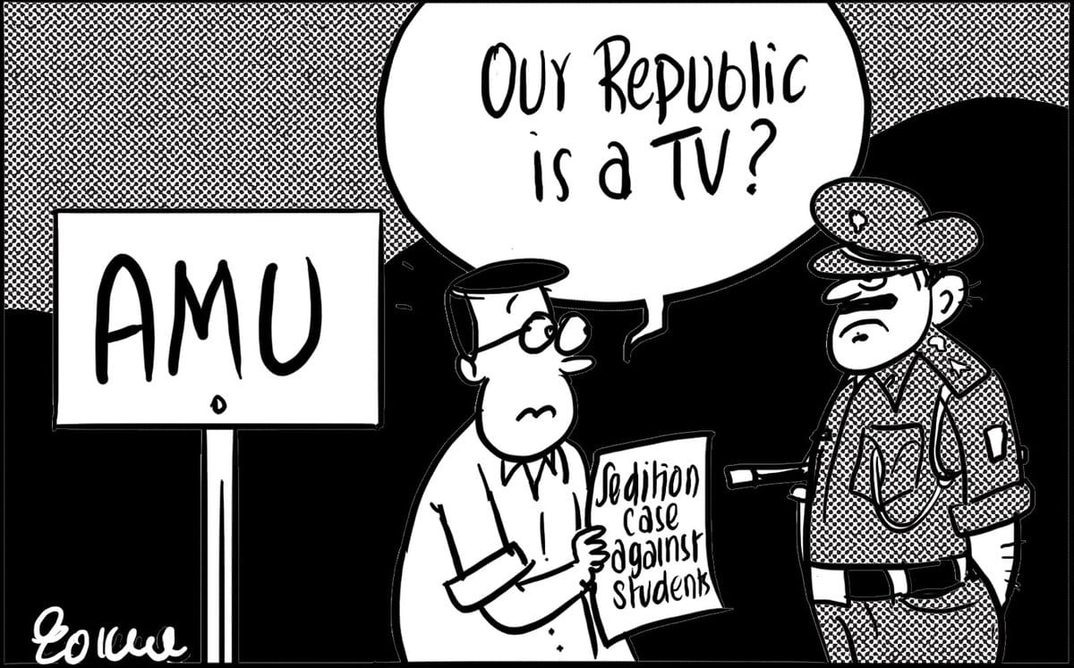 Gokul Gopalakrishnan takes a dig at the sedition charges filed against 12 students from the Aligarh Muslim University after they got into a brush with a TV channel crew.