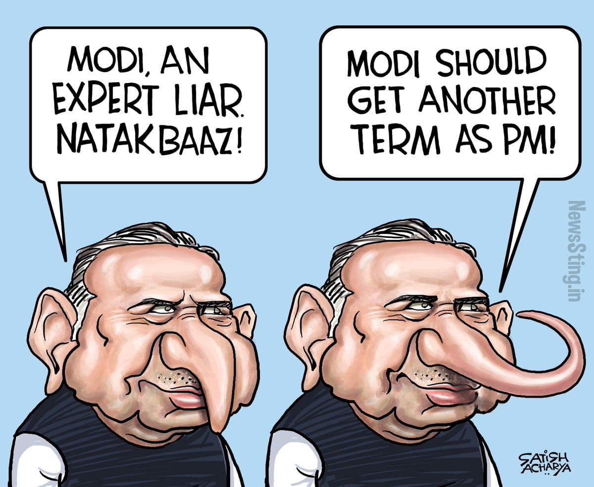 Satish Acharya takes a jibe at Samajwadi Party founder Mulayam Singh Yadav’s support for Narendra Modi’s re-election bid even as his son is set to fight the Modi government in the upcoming Lok Sabha elections.