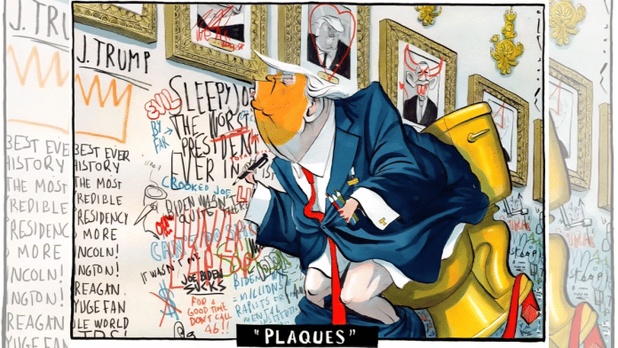 The selected cartoons appeared first in other publications, either in print, online, or on social media, and are credited appropriately.
