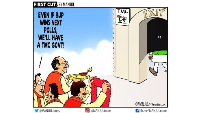 In today’s featured cartoon, Manjul makes note of the multiple leaders that defected from the Trinamool Congress in the past few weeks and joined the BJP, just ahead of assembly polls.