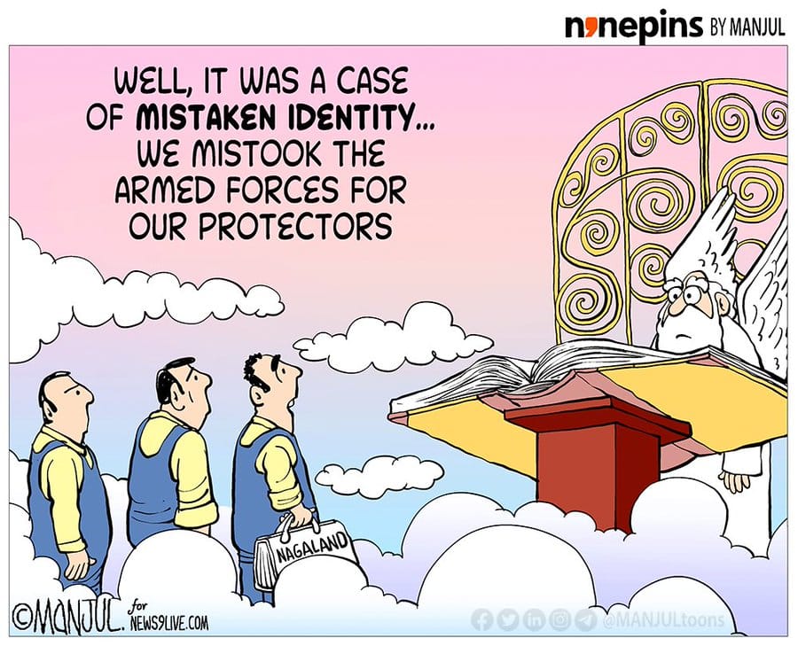 Manjul has this sombre take on Home Minister Amit Shah’s statement that ‘mistaken identity’ led to the killings by security forces personnel in Nagaland’s Mon district.