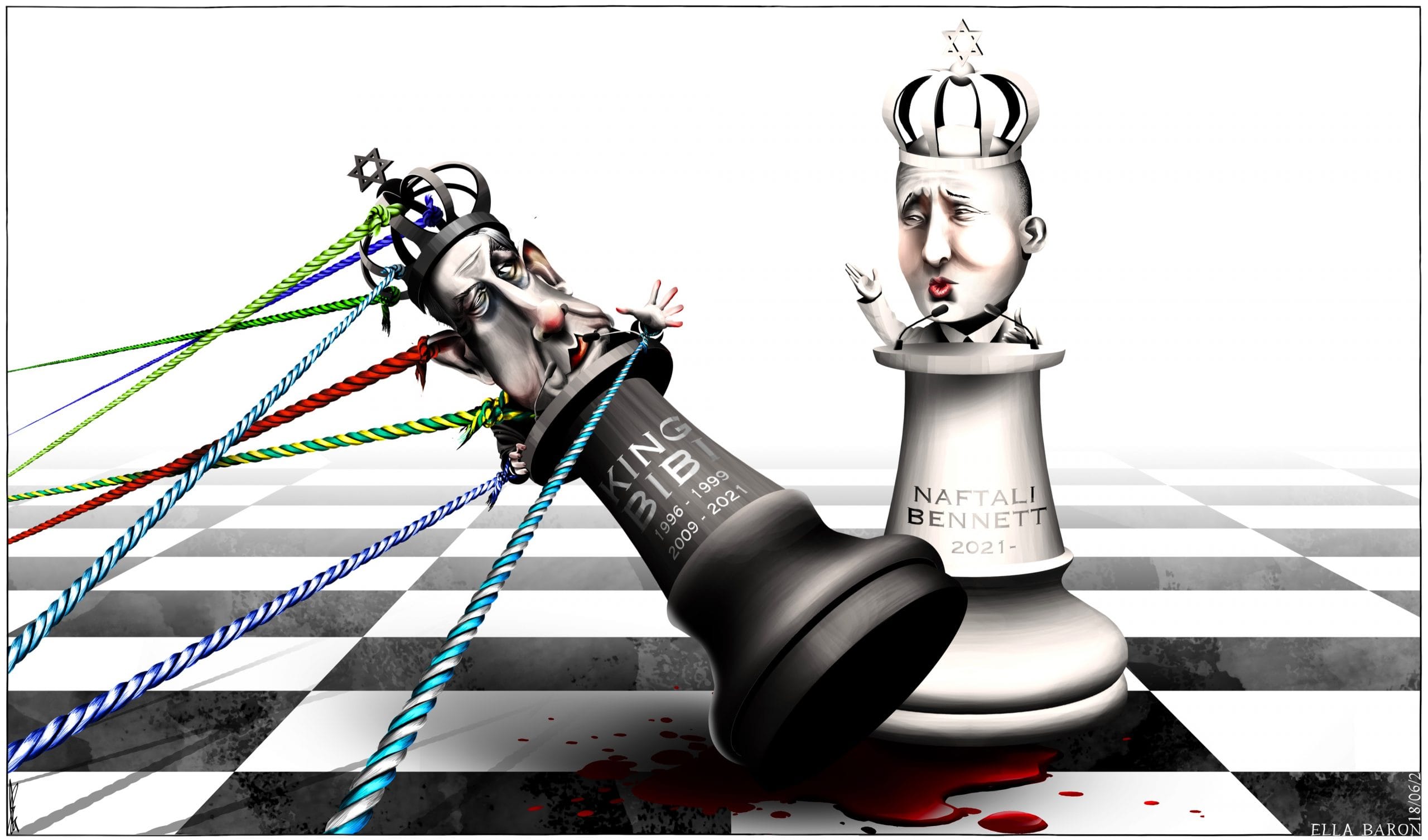 Ella Baron uses chess to illustrate the end of former Israeli prime minister Benjamin Netanyahu’s 12-year rule and new PM Naftali Bennett.
