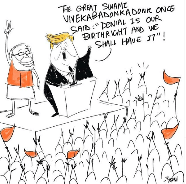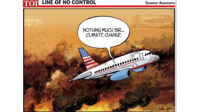 In today’s featured cartoon, Sandeep Adhwaryu takes a shot on what Trump’s advisers might have told him when he left Delhi Tuesday night. The day saw several incidents of arson, including miscreants setting a tyre market in northeast Delhi’s Gokulpuri on fire.