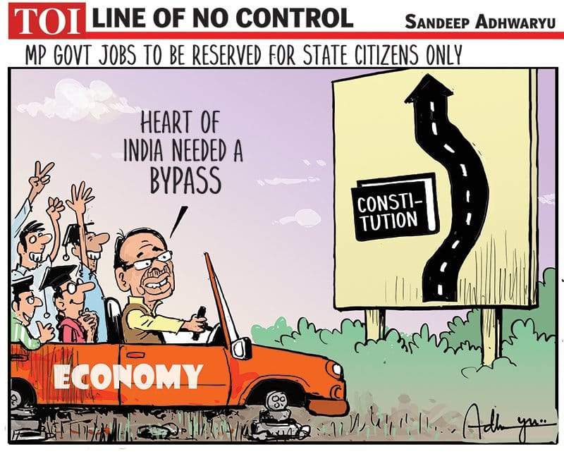 Sandeep Adhwaryu draws on the Madhya Pradesh government’s push for domicile-based reservation for all government jobs in the state. The decision has sparked debates since it is seen as a violation of the right to equality in matters of public employment, as mentioned in Article 16 of the Indian Constitution.