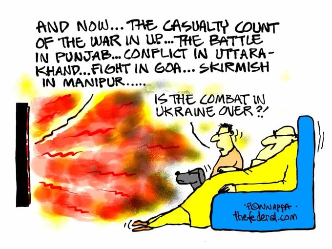 Nala Ponnappa comments on coverage of the Russia-Ukraine war taking a backseat as Indian news channels focussed solely on assembly election results.