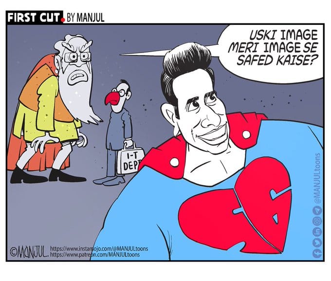 Manjul mocks the Narendra Modi government and its ‘parrot’ Income Tax Department on the 20-hour-long ‘survey’ at actor Sonu Sood’s office for alleged tax evasion. Sood had garnered nationwide approval for his charity work during the lockdown.