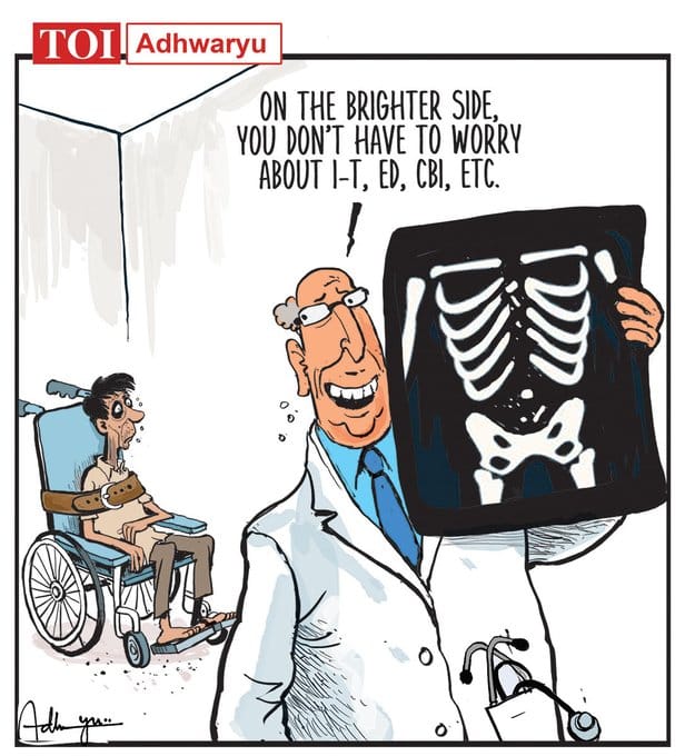 Sandeep Adhwaryu suggests that the common man’s spine is shattered, which is just as well because ‘showing a spine’ puts Income Tax Department, CBI, and other central agencies on one’s back.