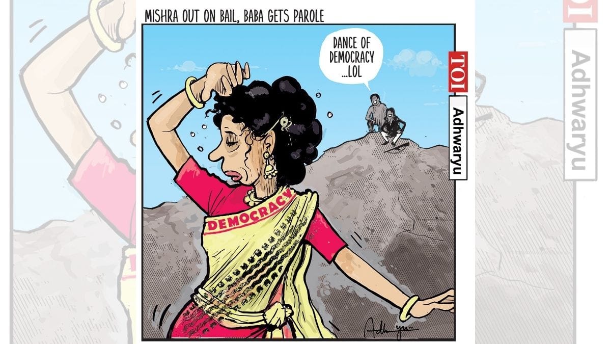 Sandeep Adhwaryu takes a dig at the grant of bail to Ashish Mishra — the prime accused in the 2021 Lakhimpur Kheri violence case and son of Union Minister of State for Home Ajay Mishra ‘Teni’ — and the furlough from jail granted to rape and murder convict Gurmeet Ram Rahim Singh, chief of the Dera Sacha Sauda religious group in Punjab. The two were released this month as Uttar Pradesh and Punjab went to the polls. The reference is to the song ‘Haan jab tak hai jaan‘ from the film Sholay.