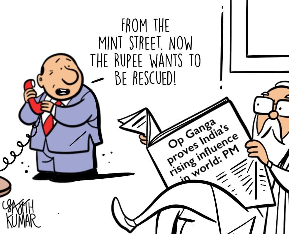 Sajith Kumar links the Modi government’s much-publicised evacuation of Indian nationals from war-hit Ukraine under ‘Operation Ganga’ to the falling value of the Indian rupee amid the war.