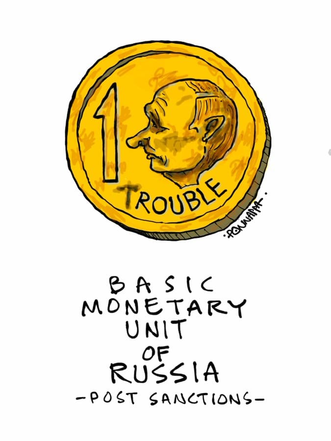 Nala Ponnappa mocks Russian President Vladimir Putin as his decision to declare war on Ukraine rebounds on his own country’s economy, with Western countries tightening sanctions. Russia’s sovereign currency, the ruble, fell about 30 per cent against the dollar Monday, making it worth less than one U.S. cent, according to a CBS report.