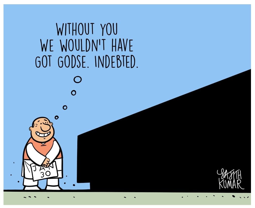 As the nation remembered Mahatama Gandhi on his 74th death anniversary on 30 January, Sajith Kumar illustrates how some people still celebrate his killer, Nathuram Godse, with the Hindu Mahasabha paying tribute to Godse and his co-accused, Narayan Apte.