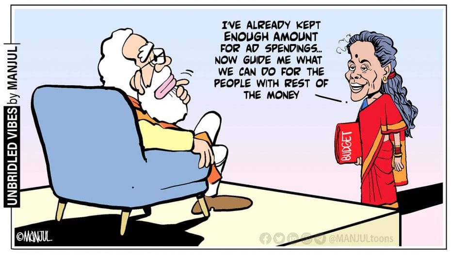 Manjul, meanwhile, takes a shot at the Narendra Modi government’s advertising spree, showing Sitharaman telling the PM that the money for that has been allocated, and now the rest of the funds can be distributed towards public welfare.