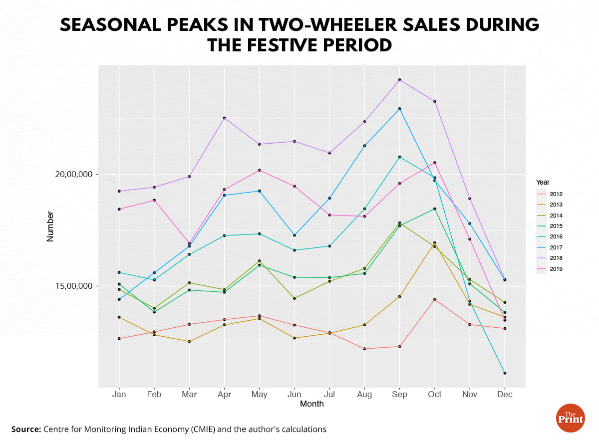 In the jargon of seasonal adjustment, Diwali is referred to as a “moving holiday”, since in some years it falls in the month of October and in some years in November. Moving holidays deeply impact economic data. For example, two-wheeler sales tend to spike around the festive season.