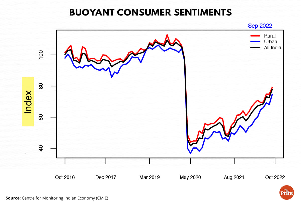 Consumer sentiments tend to improve during this period. The index of consumer sentiments rose to a 30-month high in September as the month was packed with festivities across the nation. The rise in consumer sentiments was seen for both urban and rural regions.