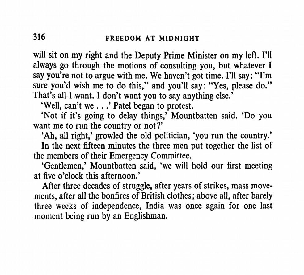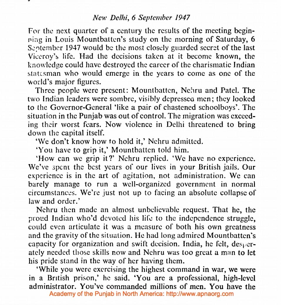 PostScript: Since we promised you a consolation of sort, the lieutenant accompanying Nehru in that meeting with Mountbatten was Sardar Patel. Read the pages from the book here.
