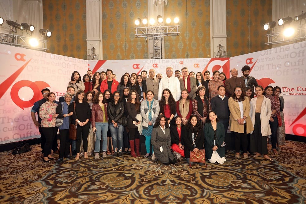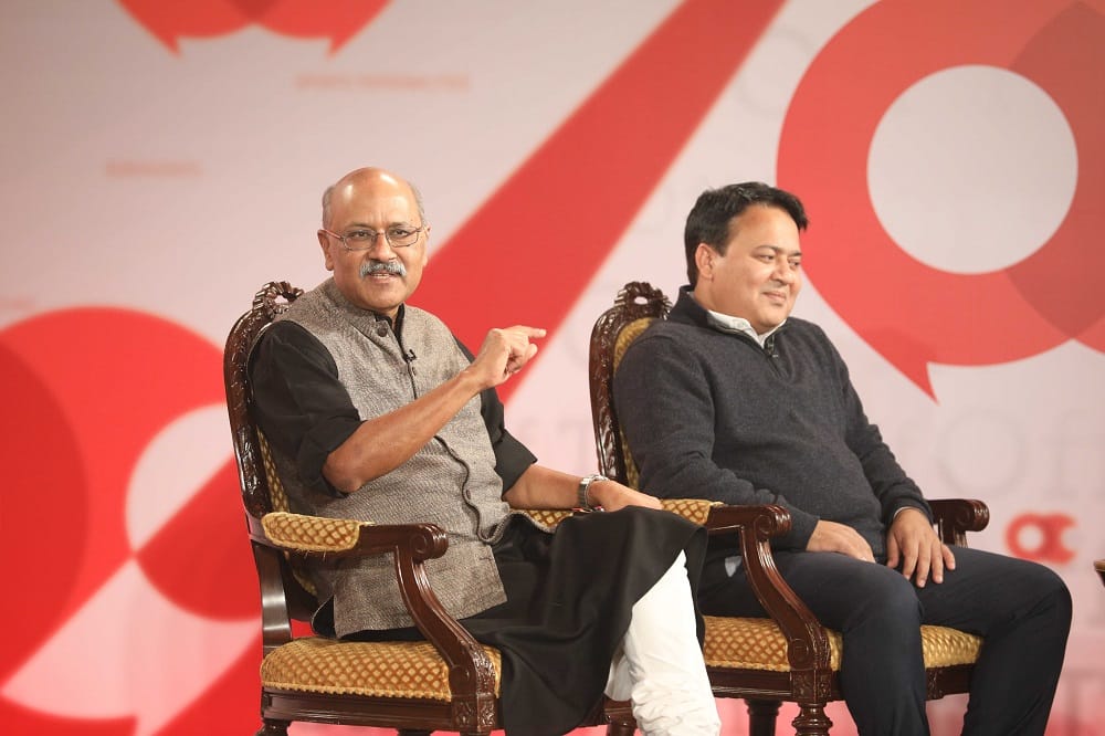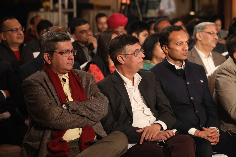 From left: Omkar Bhattacharya, chief revenue officer, ThePrint; Pawan Khera; Naveen Jindal, Chairman, JSPL Corporate
