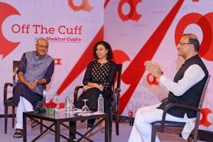 From left: Shekhar Gupta, editor-in-chief, ThePrint; Ruhi Tewari, associate editor, ThePrint; Jayant Sinha, minister of state for civil aviation