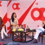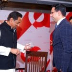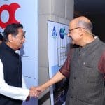 Sunil Kant Munjal (L); Shekhar Gupta (second from right); Amar Singh (R)