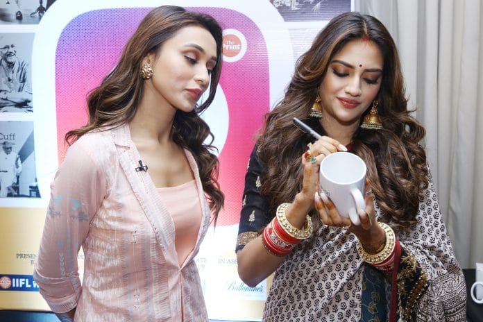 Mimi Chakraborty and Nusrat Jahan posed for photograph with ThePrint team after the event.