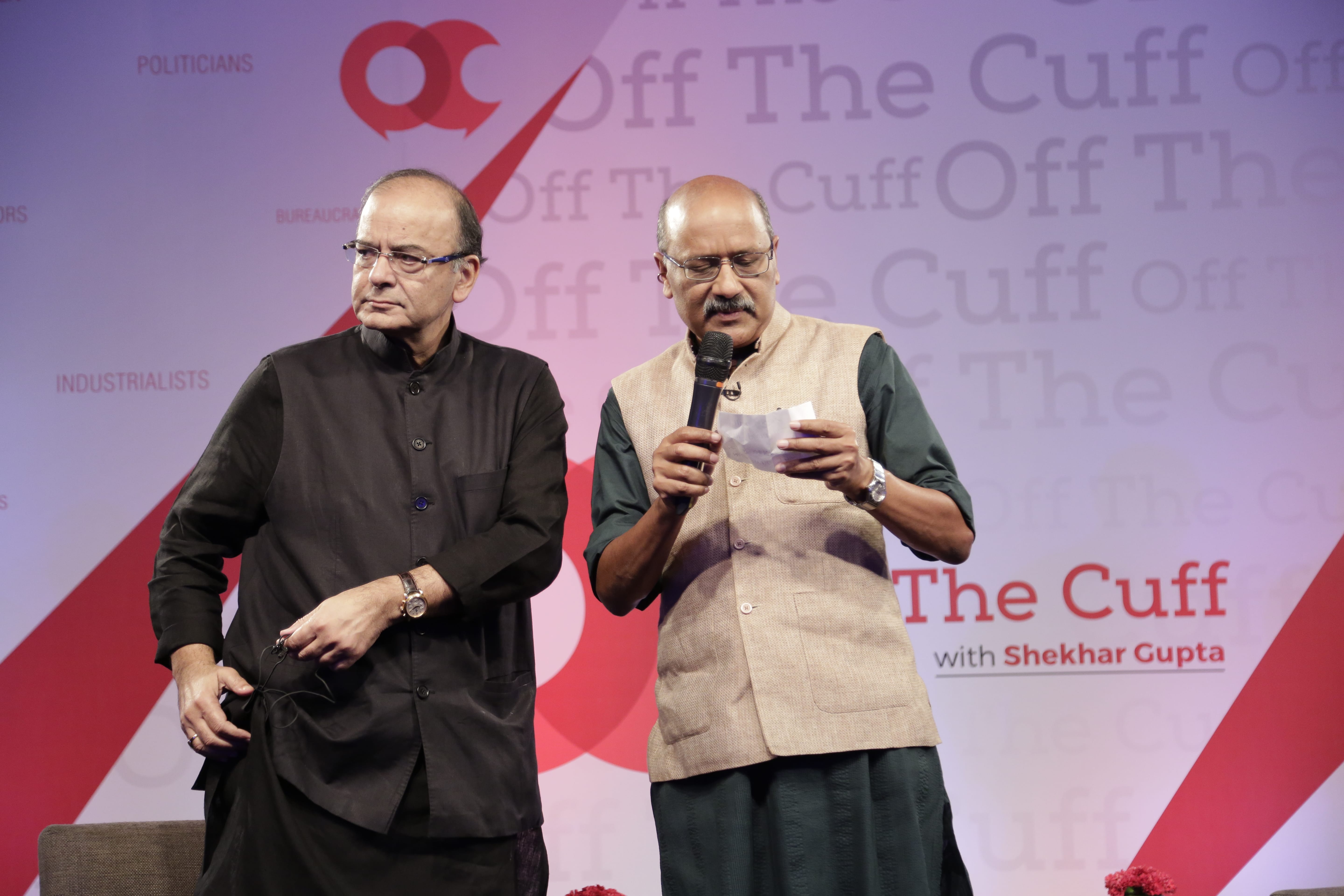 Off The Cuff Off The Cuff with Arun Jaitley By Abhishek Krishnan - January 15, 2018 FacebookTwitterWhatsAppLinkedin The third edition of ‘Off The Cuff’ saw Hon. Minister of Finance and Corporate Affairs of India, Arun Jaitley in conversation with ThePrint Chairman and Editor in Chief Shekhar Gupta. The event was held in Mumbai on 21 March 2016PrevNext1Off The Cuff with Arun Jaitley Shekhar Gupta and Arun Jaitley in conversation2Off The Cuff with Arun Jaitley A full audience3Off The Cuff with Arun Jaitley The audience asking questions4Off The Cuff with Arun Jaitley Intently listening to Arun Jaitley live5Off The Cuff with Arun Jaitley Shekhar Gupta and Arun JaitleyPrevNext