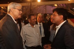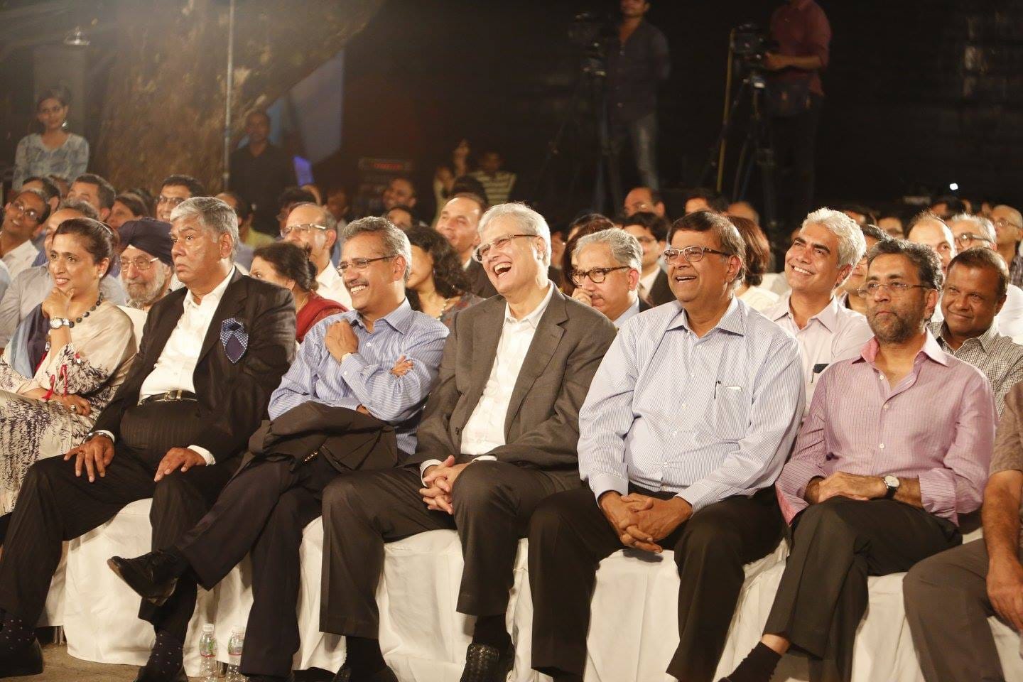A captivated audience, including Vijay Kalantri, Chairman and Managing Director of Balaji Infra Projects Limited (second from left), listens to an engaging conversation between Shekhar Gupta and Piyush Goyal