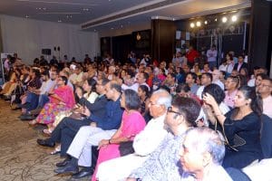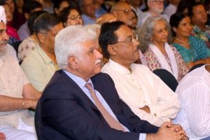 From left: Rakesh Bharti Mittal, MD, Bharti Mobile Ltd.; Pavan Varma, former MP, Rajya Sabha; former chief economic adviser Arvind Subramanian and his family seated in the next row