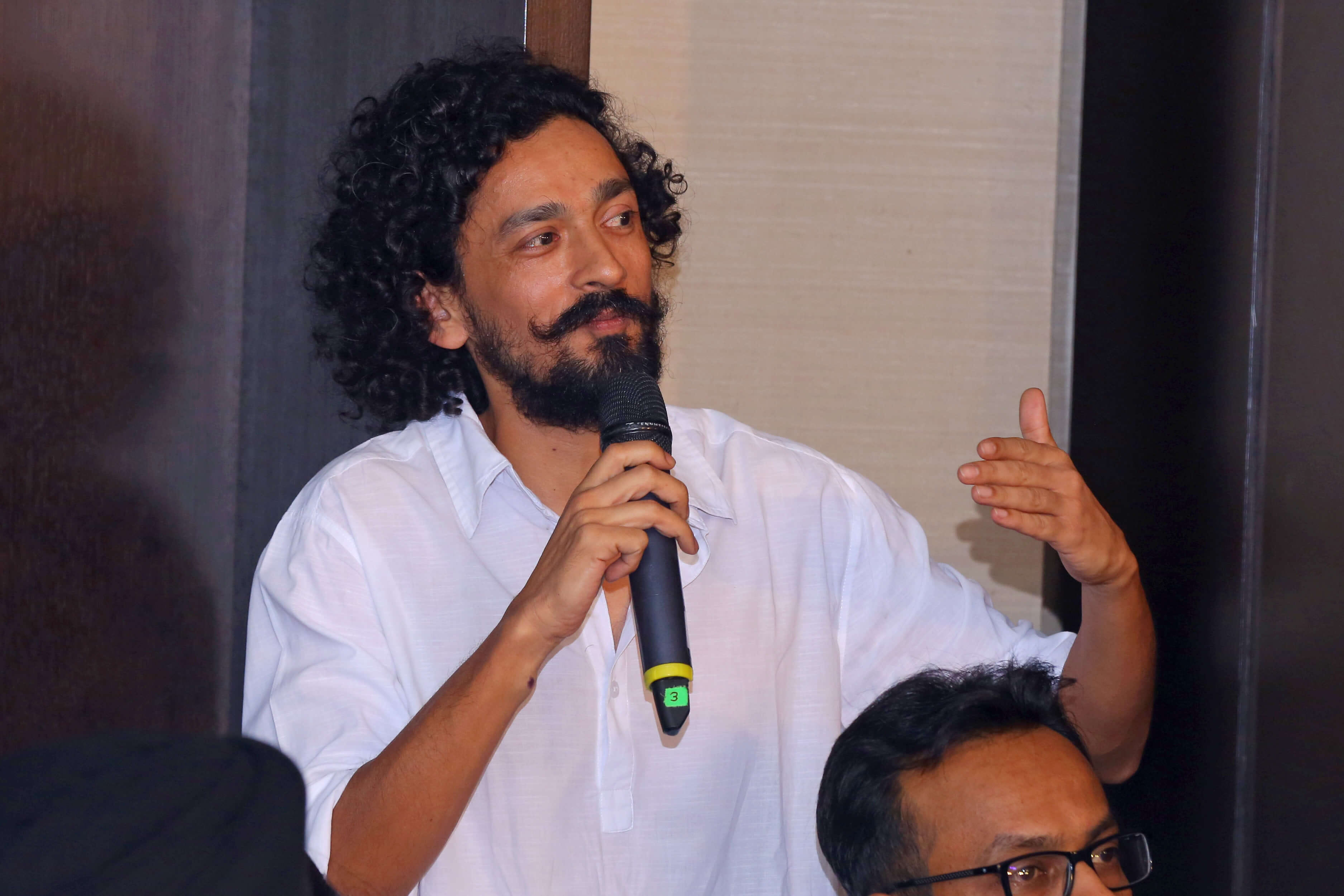 Ashutosh, spokesperson, AAP (L); Abhinandan Sekhri, co-founder & CEO, Newslaundary (R). Ashutosh asked, “All major rebellions in the world started from either literature or another creative field. But in India, both literature and film are silent on today’s political weather. Is this a political constraint or opportunism?