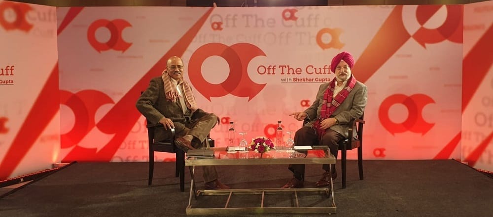 From left: Shekhar Gupta, editor-in-chief, ThePrint; Hardeep Singh Puri, Union Minister for Housing, Urban Affairs & Civil Aviation