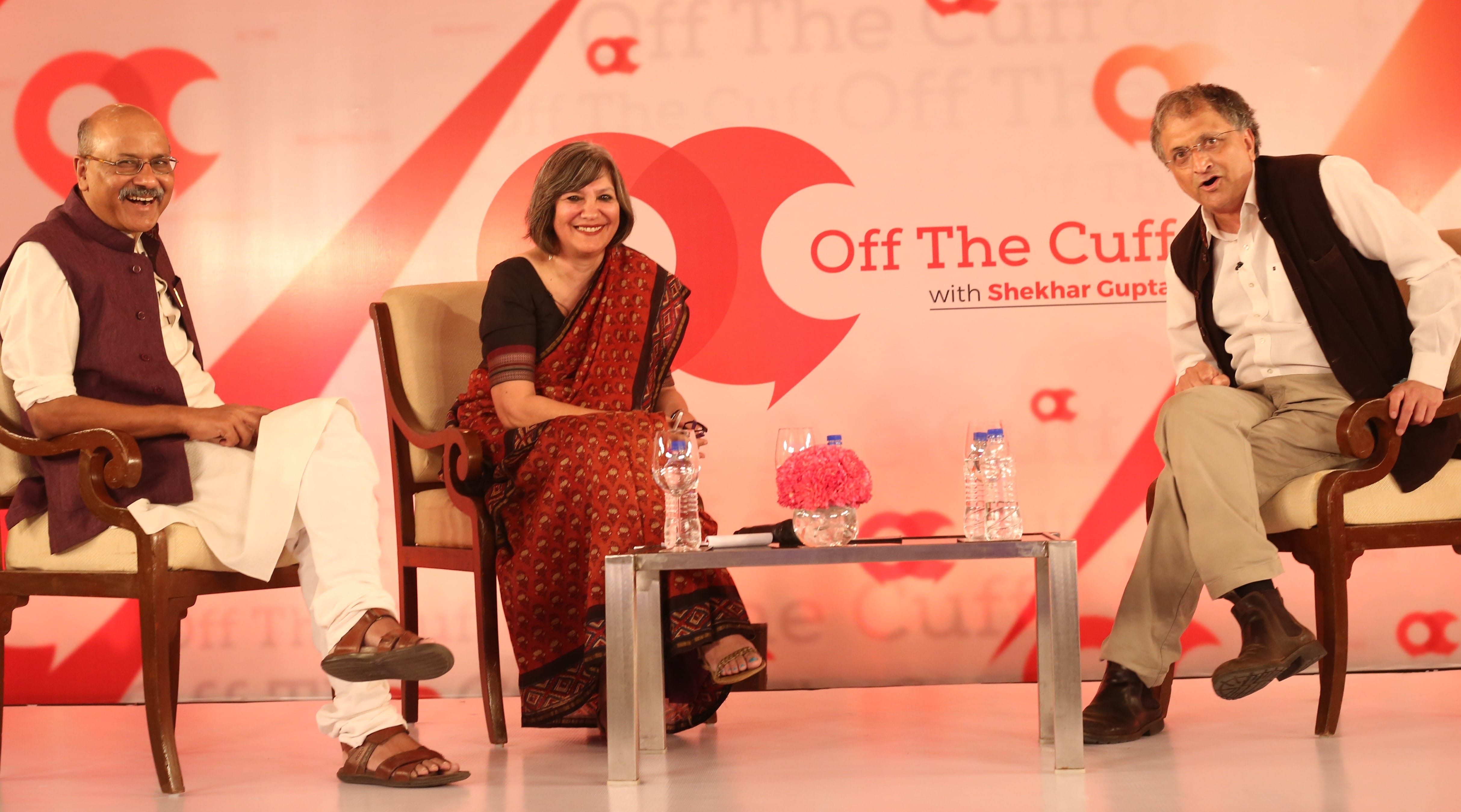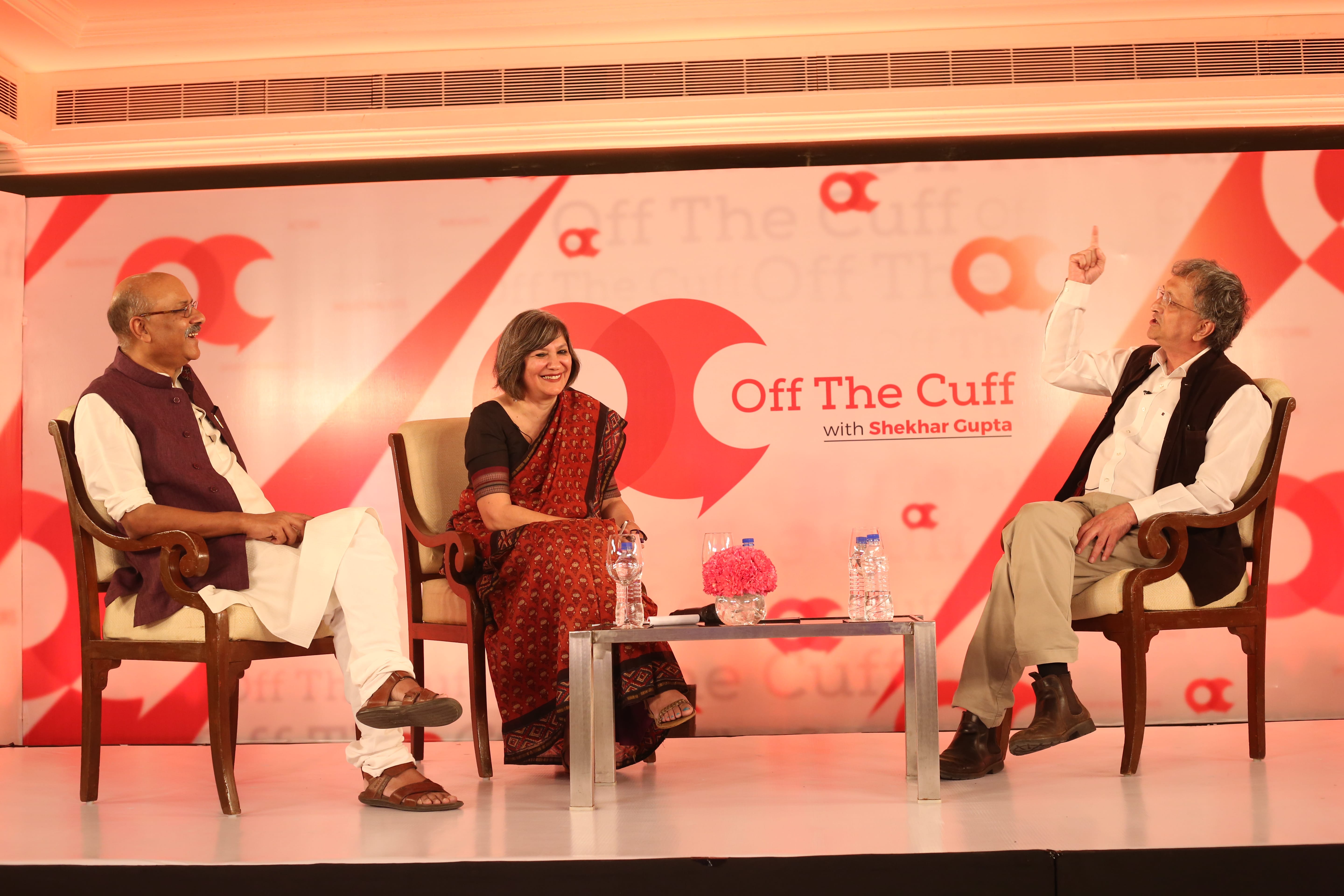From left: Shekhar Gupta, editor-in-chief, ThePrint; Jyoti Malhotra, editor (National and Strategic Affairs) ThePrint; Ramachandra Guha, historian and author