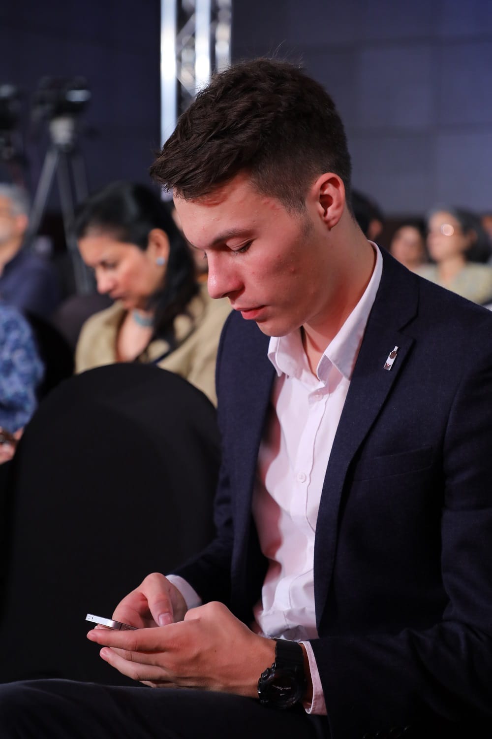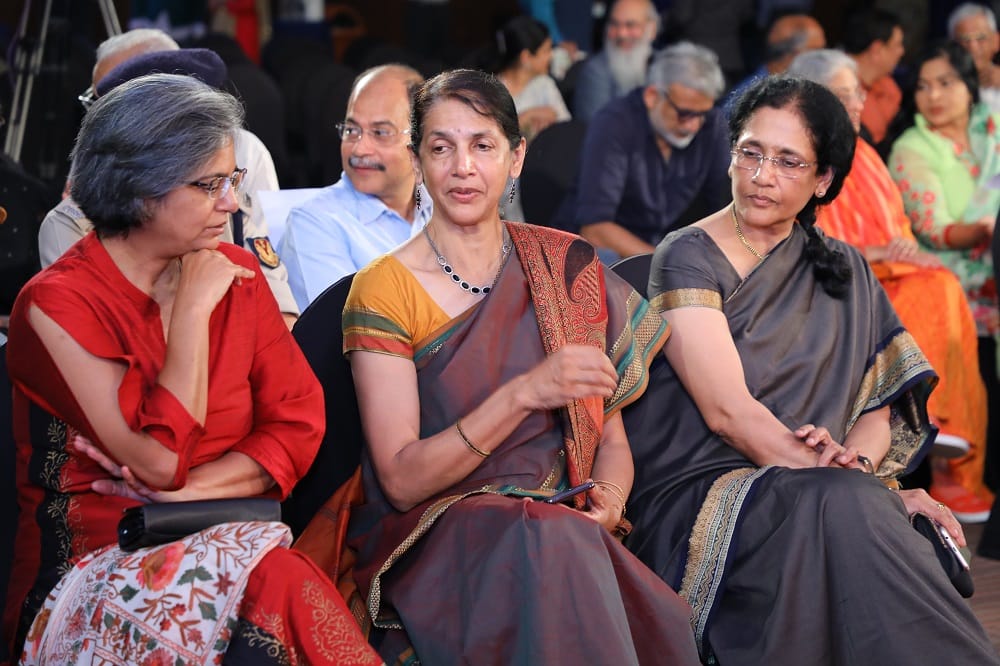 Left to right: Radhika Ravindran, Russian interpreter and teacher Indira Jayaram and freelance writer and lawyer Mina Anand were in the front row of the audience.