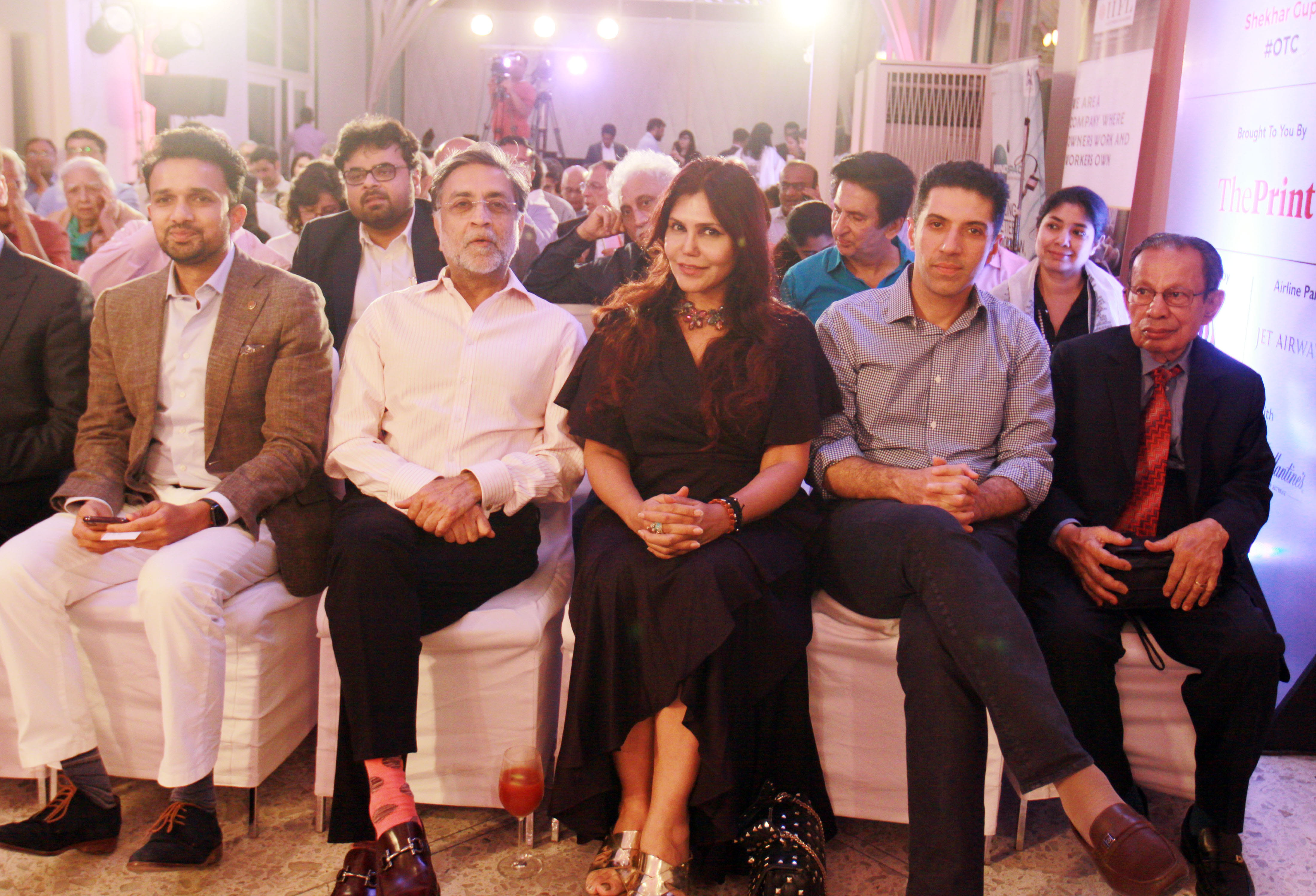 From left: Geeta Karnani, Vijay Karnani, co-chief executive officer, Goldman Sachs, India; Omkar Bhattacharya, chief revenue officer, ThePrint; with Sanjeev Sanyal