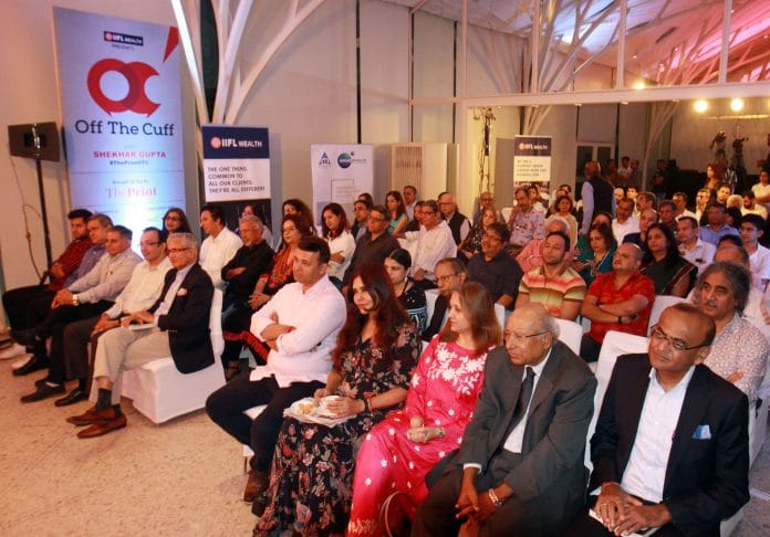 From left: Author Amish Tripathi, ThePrint’s associate editor Manasi Phadke and editor-in-chief Shekhar Gupta