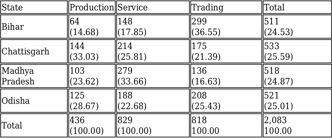 In an effort to examine the impact of Covid-19 on women-led micro, small and medium enterprises (MSMEs), we surveyed 2,083 non-agricultural enterprises across four states: Bihar, Chhattisgarh, Madhya Pradesh, and Odisha. Specifically, the survey reached rural women entrepreneurs in the intervening period when the first of the unlock measures was announced in June 2020 followed by Phase 2 in July 2020. Small women-led enterprises, for the purpose of this survey, were defined as enterprises that are run from an establishment or from individual households, fall in the micro category of MSMEs and have women registered as owners.