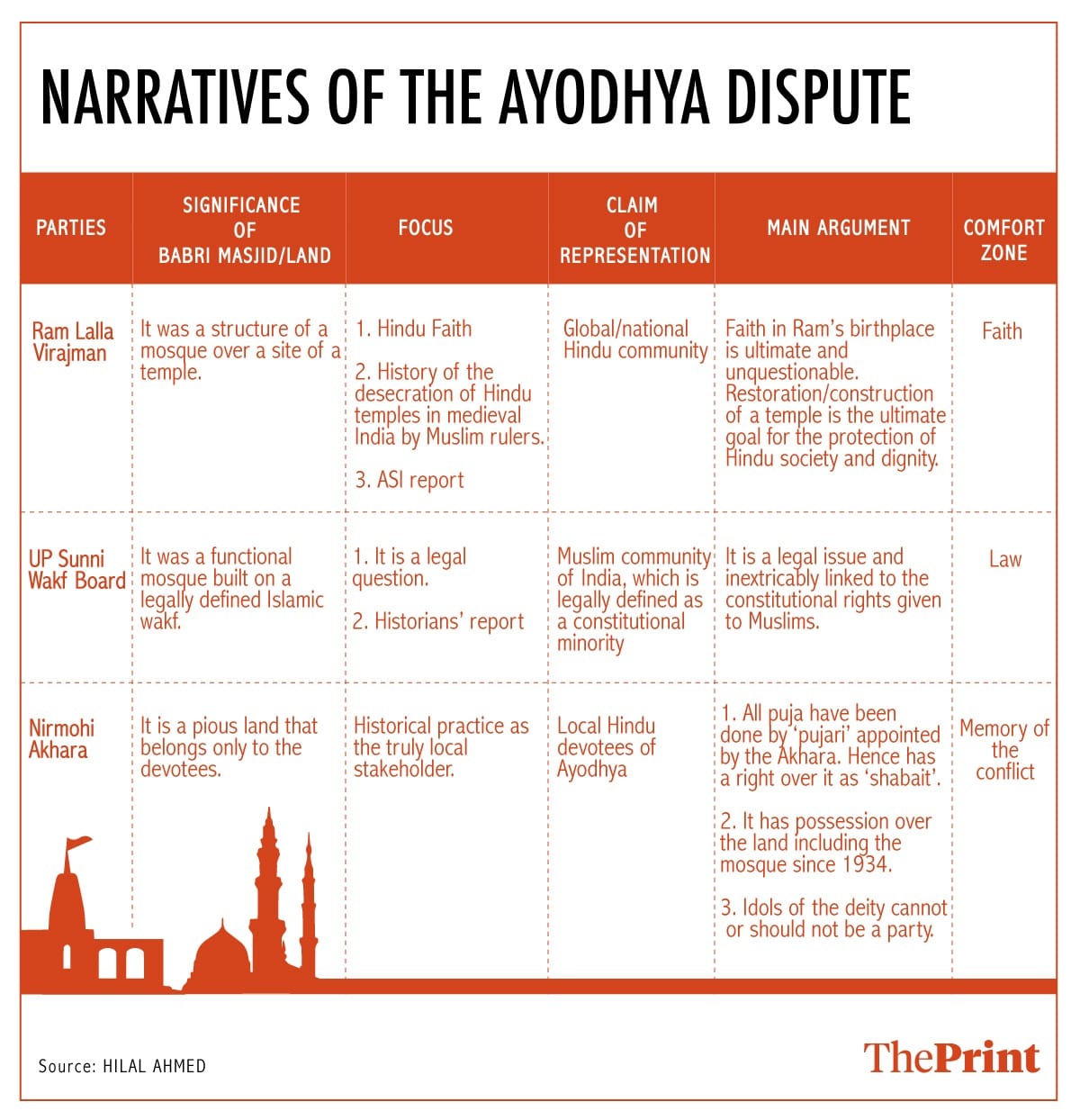 Each of the three parties — the Sunni Wakf Board, the Nirmohi Akhara and the Ram Lalla Virajman — have fought the case on very distinct arguments of law, memory and faith.