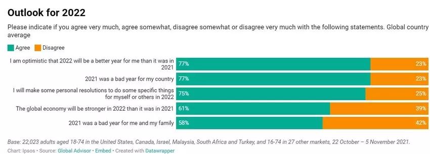 - Over 75% of people around the world think 2022 will be a better year than 2021.