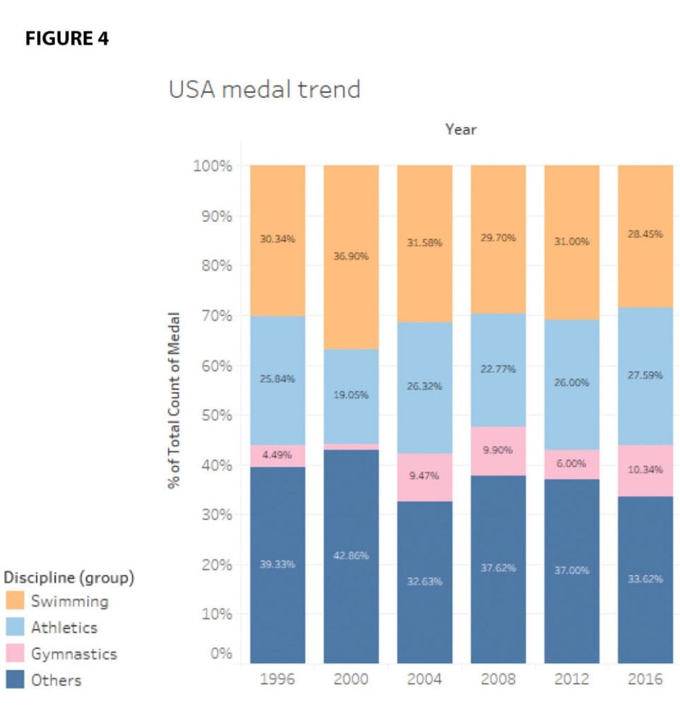 - US: athletics, swimming and gymnastics yield > 65 per cent medals [Figure 4]