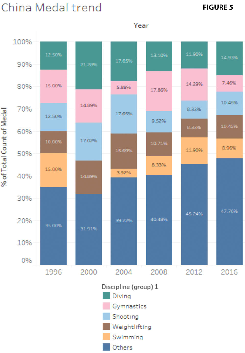 - China: diving, gymnastics, shooting, weightlifting and Swimming yield > 50 per cent medals [Figure 5]