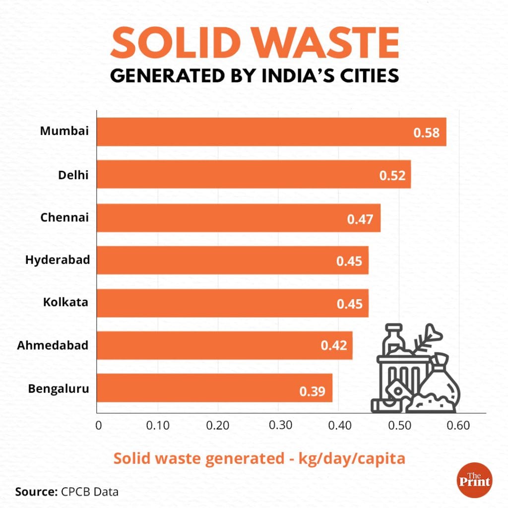 According to the Delhi Pollution Control Committee (DPCC), 10,990 metric tonnes (MT) of solid waste is generated per day in Delhi. Of this, around 51 per cent is sent, unprocessed, to the landfills, while the remaining 49 per cent is treated in waste-to-energy (WTE), composting or refuse-derived-fuel (RDF) plants.