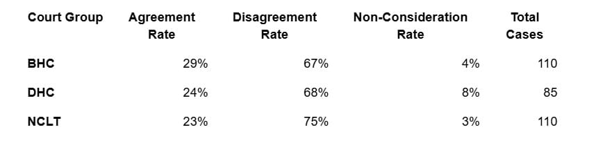 A perfect lawyer-like answer to this question would tell you that “much depends on the facts and circumstances of each case”, the judge in question, and the lawyer arguing the case. And that is perhaps correct at the level of an individual case. However, with a large enough random sample of cases, it is possible to identify the plausibility of a force majeure defense more generally before an Indian court. We analysed 305 commercial and company disputes before the High Courts of Bombay and Delhi, and the National Company Law Tribunal (NCLT), respectively, using TheProfesseer’s database. We specifically pick cases where a counterparty to a contract invoked force majeure as a defense for not performing their contractual obligations.