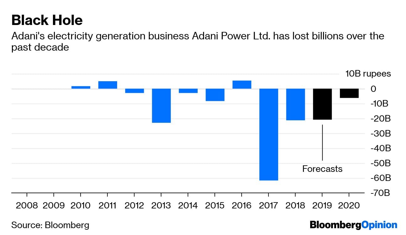 The company has argued that coal market prices don’t matter because it intends to burn the product in its own generators. But that doesn’t sidestep basic economics: Adani Power Ltd. has lost an aggregate 107 billion rupees ($1.5 billion) over the past decade, and would likely be doing even worse if it were buying overpriced coal from Carmichael.