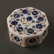 Pietra dura, an Italian word for ‘hard stone’, refers to the marble inlay work that first emerged in 16th century Italy. This stone-work technology reached its pinnacle during the Mughal period in India, particularly under Shah Jahan, and its most delicate and spectacular expression can still be seen in the inlay work on the Taj Mahal and in the Tomb of Itmad-ud-Daulah in Agra. This art form continues to be practised using technology that has remained unchanged for the last 400 years by the descendants of Mughal-era craftsmen in three clusters in India. The remaining parchinkari clusters in India are situated in Varanasi and parts of Rajasthan.